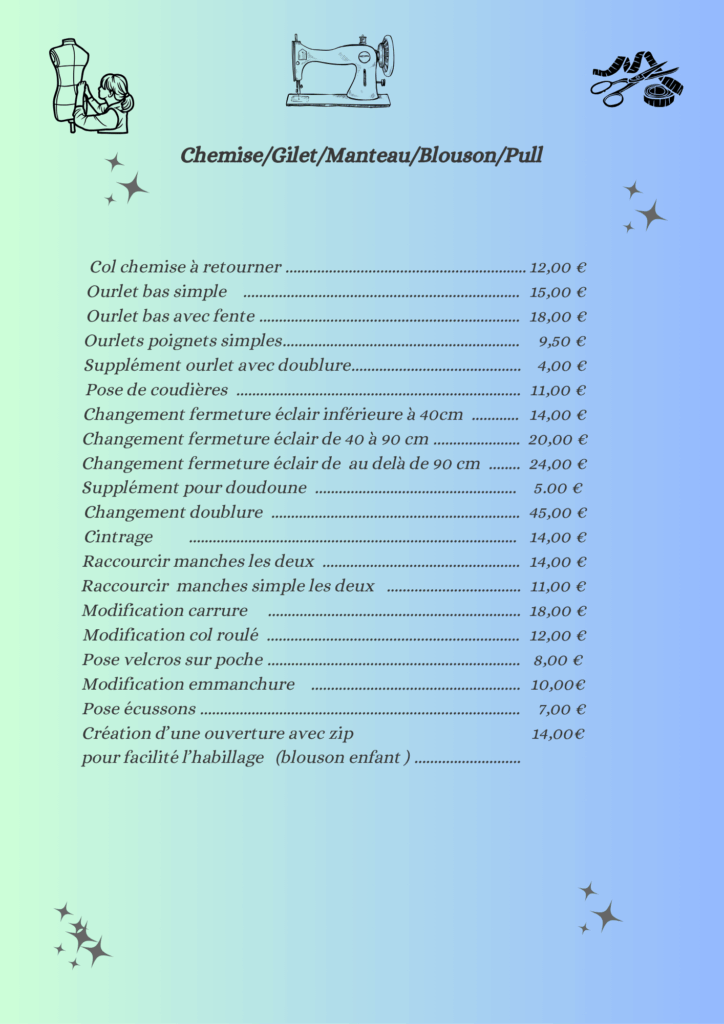 • Tarifs retouches